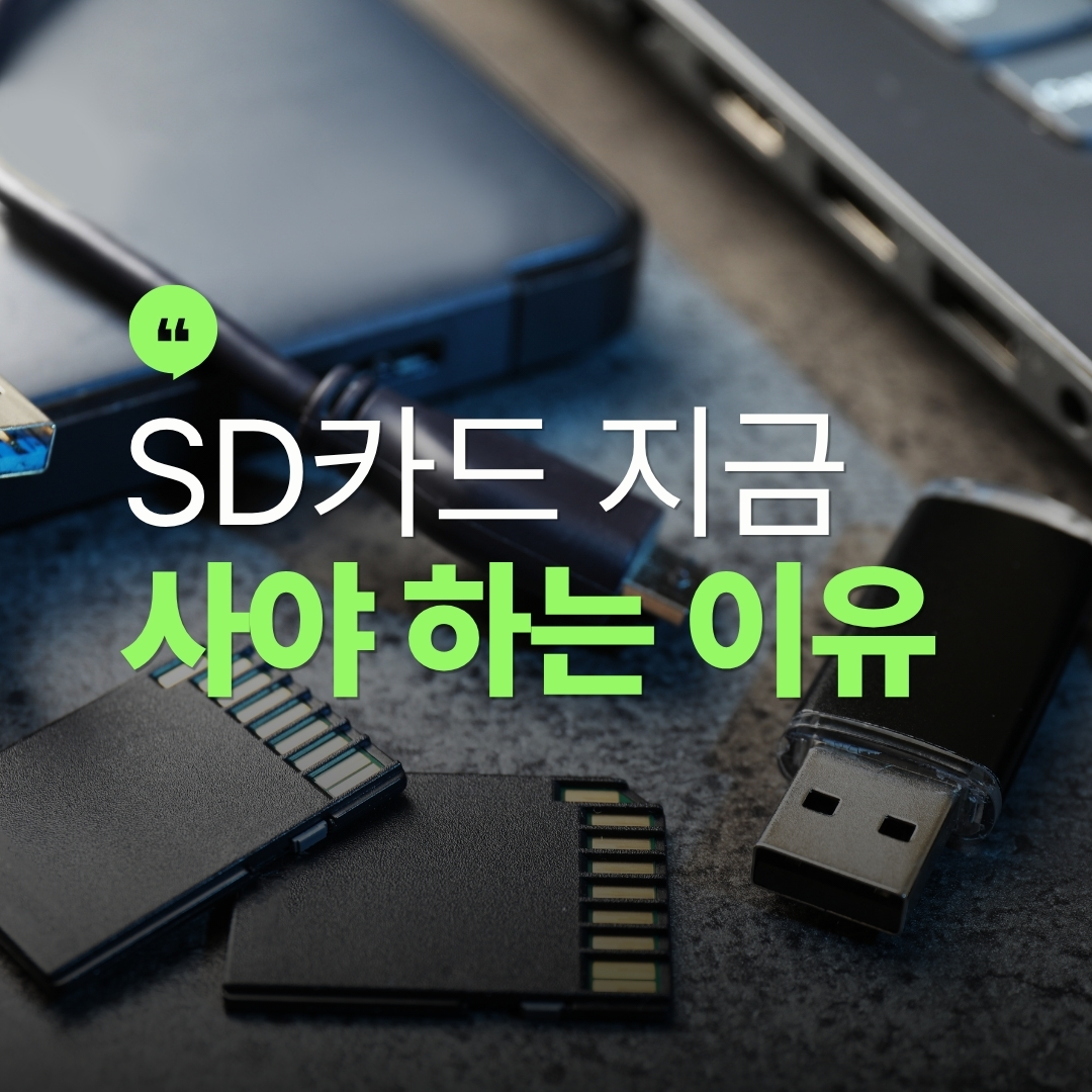SD카드는 가장 대중적인 저장 매체로 가격이 저렴하고 호환성이 뛰어납니다. 하지만 고화질 영상 촬영에서는 속도 한계가 존재합니다.