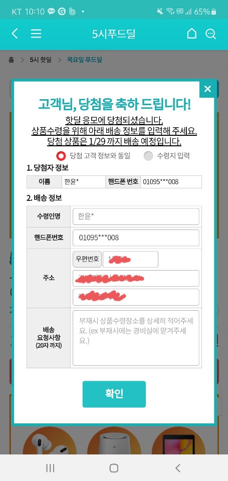 정말 당첨이 되었더라고요~그래서 정보입력하고 드디어 오늘(1/22) 우체국택배로 받았습니다.